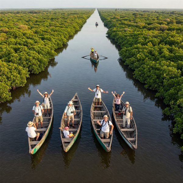 Le Sine Saloum, situé dans le delta du Saloum (classé à l’UNESCO), est une destination naturelle et culturelle unique au Sénégal. Connu pour ses bolongs, ses mangroves et ses îles préservées, il offre une immersion authentique dans la culture sérère et un écotourisme de qualité. Entre excursions en pirogue, observation d’oiseaux, découverte des amas coquilliers historiques et séjours dans des éco-lodges, la région allie tranquillité, aventure et respect de l’environnement. Idéal pour les voyageurs en quête d’authenticité, le Sine Saloum est une porte d’entrée vers un Sénégal préservé et fascinant.
